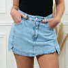 Estapollera short de jeans destaca por su diseño práctico y moderno, con una solapa que cubre completamente la parte delantera para un estilo único. Cuenta con cierre y botón para un ajuste seguro.